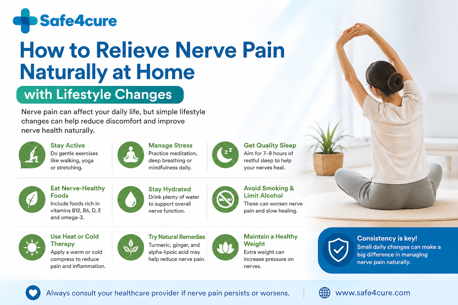 The foundation of managing neuropathic pain naturally starts with lifestyle changes. Here are evidence-based strategies that have helped many people reduce their symptoms: