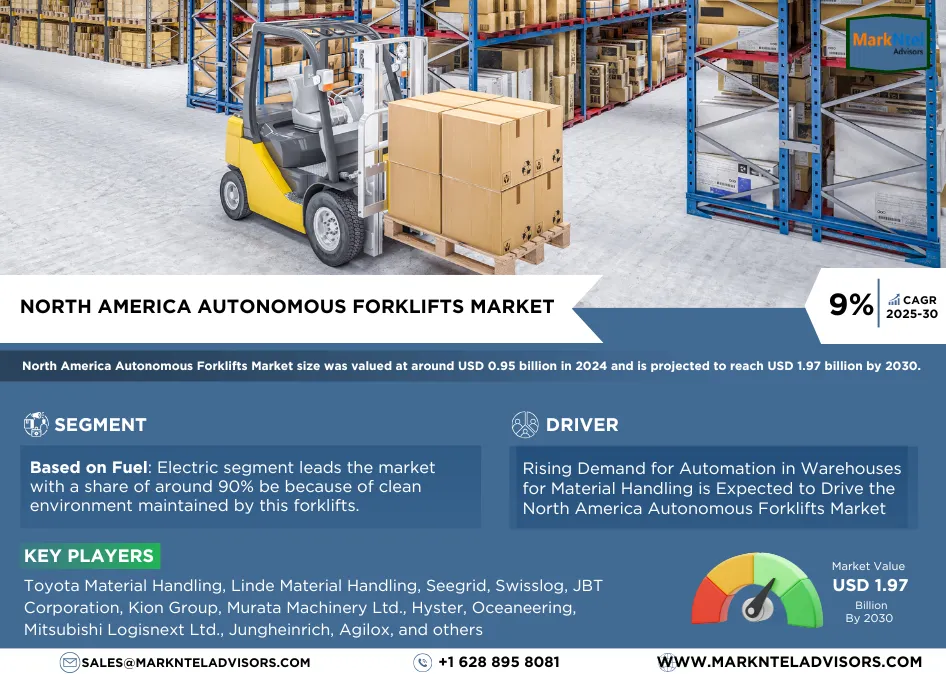 MarkNtel Advisors, a leading market research and consulting firm, has announced the release of its latest study titled North America Autonomous Forklifts Market Research Report: Forecast (2025–2030). This report provides a detailed assessment of the North America Autonomous Forklifts Market, covering its evolving dynamics, emerging trends, key growth drivers, major challenges, and competitive landscape.