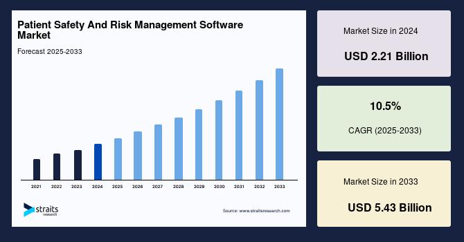 According to StraitsResearch, the global patient safety risk management software market size was valued at USD 2.21 billion in 2024 and is estimated to reach USD 5.43 billion by 2033, growing at a CAGR of 10.5% during 2025-2033.