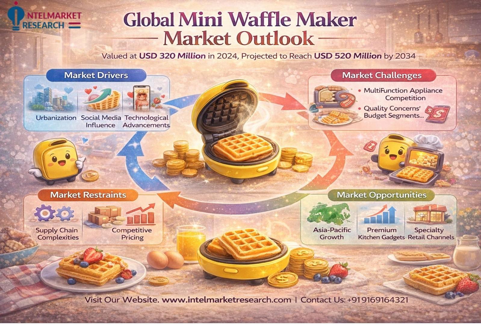 According to a new report from Intel Market Research, the global Mini Waffle Maker market was valued at USD 320 million in 2024 and is projected to reach USD 520 million by 2034, growing at a steady CAGR of 5.8% during the forecast period (2025–2034). This growth is fueled by rising demand for compact kitchen appliances, the popularity of homemade breakfast solutions, and continuous product innovation by key manufacturers.