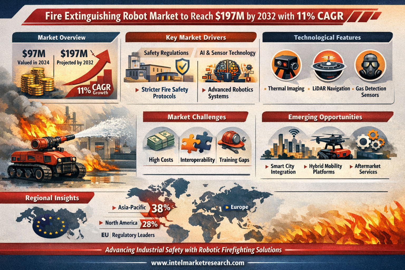 - Europe: Leads in regulatory innovation, with the EU mandating robotic fire suppression in all new chemical storage facilities by 2026