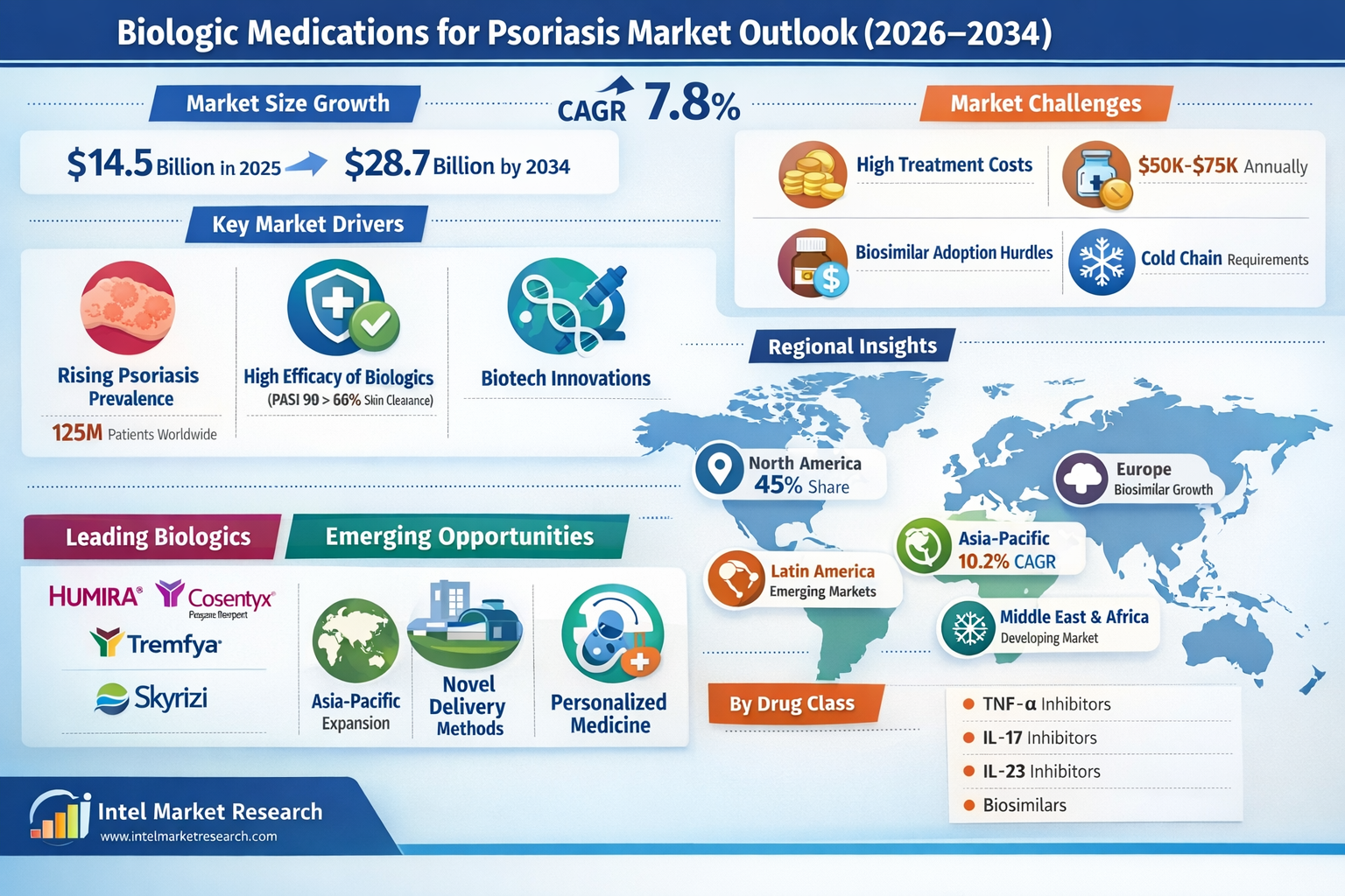 According to a new report from Intel Market Research, the global biologic medications for psoriasis market was valued at USD 14.5 billion in 2025 and is projected to reach USD 28.7 billion by 2034, growing at a CAGR of 7.8% during the forecast period (2026–2034). This growth is fueled by increasing psoriasis prevalence, superior efficacy of biologics over conventional treatments, and significant advancements in biotechnology.