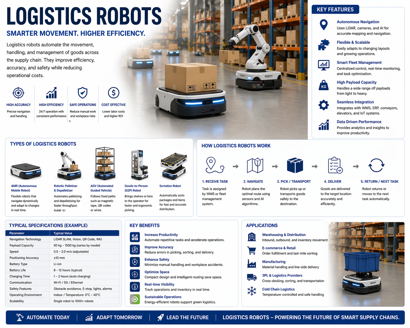 Artificial intelligence (AI) and machine learning are poised to have a profound impact on the Logistics Robots Market. By enabling autonomous mobile robots logistics to analyze data in real-time, businesses can optimize their workflows, enhance inventory management, and streamline operations. The introduction of AI-driven insights allows for predictive analytics, which can foresee demand fluctuations and adjust operations accordingly. This technological integration is crucial in fostering long-term growth and efficiency within logistics operations.