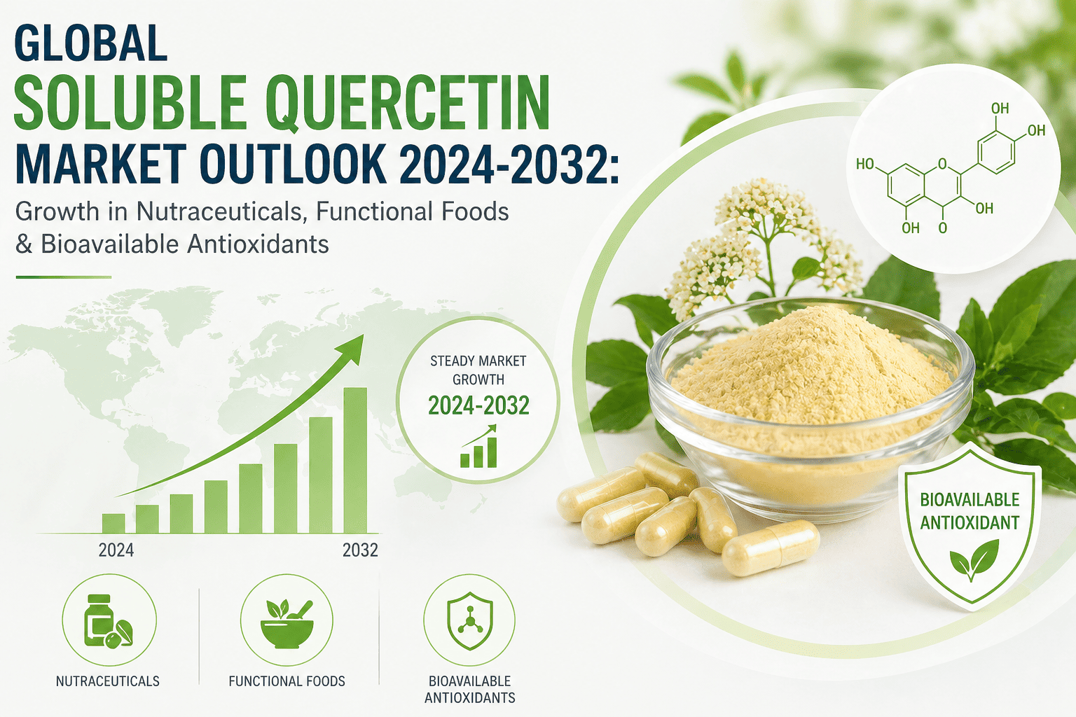 This report provides a comprehensive analysis of the global soluble quercetin market from 2024-2032, featuring: