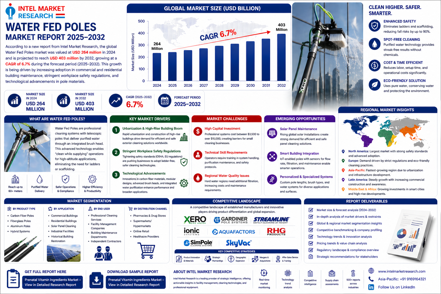 According to a new report from Intel Market Research, the global Water Fed Poles market was valued at USD 264 million in 2024 and is projected to reach USD 403 million by 2032, growing at a CAGR of 6.7% during the forecast period (2025-2032). This growth is being driven by increasing adoption in commercial and residential building maintenance, stringent workplace safety regulations, and technological advancements in pole materials.